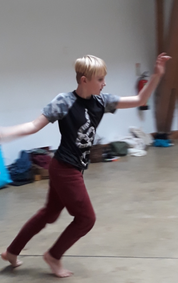 My sessions respond to the individual or group I encounter. I often work with children but happily bring the joy of movement exploration to adults, including elders and those with differing abilities. I offer a medley of physical warm ups, improvisation, solo and group choreography, all different kinds of music, props and objects that inspire kinaesthetic exploration and story creation, experiential anatomy, action songs and games, connecting our bodies with the seasons and nature – with a priority upon dance as an inclusive activity.